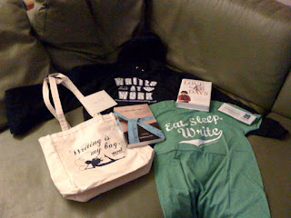 I received my prize box today, and want to thank you for your thoughtful generosity. The hoodie and t-shirt look so comfy and cute–I adore that kelly green color and the fun graphics.